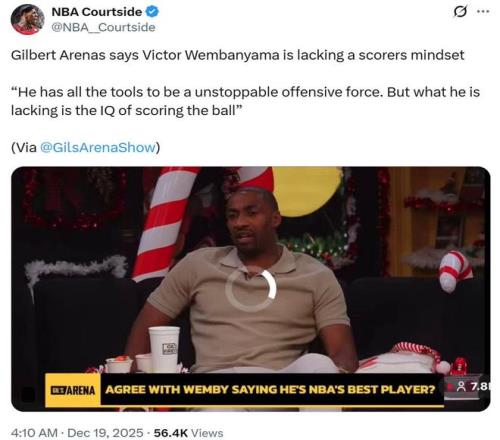 其中阿里纳斯就在节目中表示,文班亚马显然拥有成为一名顶尖得分手的所有条件,但他目前缺少得分的篮球智商。