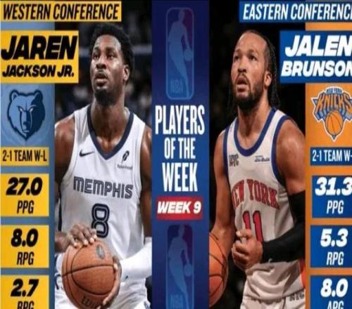 公布战力榜的同时,NBA还公布了上周周最佳球员,布伦森、小贾伦杰克逊当选上周东、西部最佳球员。布伦森上周带领球队取得了2胜1负,场均可以得到31.3分5.3篮板8助攻;小贾伦-杰克逊上周带领球队取得了2胜1负,场均可以得到27分8篮板2.7盖帽。布伦森这个荣誉无须质疑,杰克逊的或许有点水分,但西部上周确实没几个表现很好的球星,而且强队基本上都输掉了不少比赛,像雷霆、火箭都输了不少。另一方面,杰克逊场均能拿到8个篮板,这也是个亮点;一直以来他都不喜欢拼抢篮板球,作为内线常年场均篮板只有5个左右,能场均抢8个也算进化了。