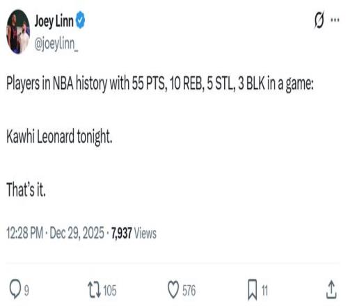 狂轰55分11板5断3帽,小卡连创纪录成NBA历史首人!快船轻取东部第一豪取现存最长4连胜。