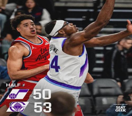 爵士三分也不准,上半场只有14中2,但是三分出手数比快船少了10次。内线得分爵士36-16完爆快船,半场战罢,快船53-50只领先3分。爵士9人休战,快船第二节输了11分……李凯尔8中7,半场砍下16分8篮板,正负值+18!