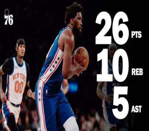 常规赛,76人客场130-119战胜尼克斯。