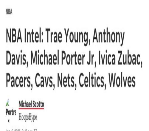 北京时间1月7日,距离交易截止日仅剩一个月,知名美媒HoopsHype汇总了特雷-杨、安东尼-戴维斯、小迈克尔-波特、伊维察-祖巴茨等球星,以及步行者、骑士、篮网、凯尔特人、森林狼、奇才、鹈鹕等球队的最新交易情报。