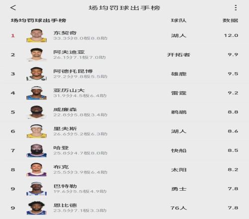 阿夫迪亚本赛季场均突破20.5次,确实是联盟第一。但他罚球也是真的多,开拓者5连胜期间,阿夫迪亚一共得到58次罚球,场均11.6次。本赛季至今,阿夫迪亚场均9.9次罚球出手,高居联盟第2,仅次于东契奇的场均12次。