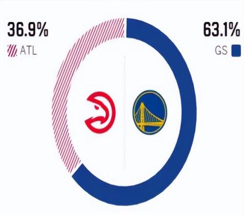 赛前,美媒ESPN对本场比赛进行了胜率预测,老鹰队胜率仅有36.9%,勇士胜率则高达63.1% ,还是有一点点优势的。
