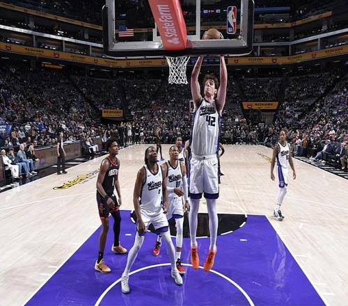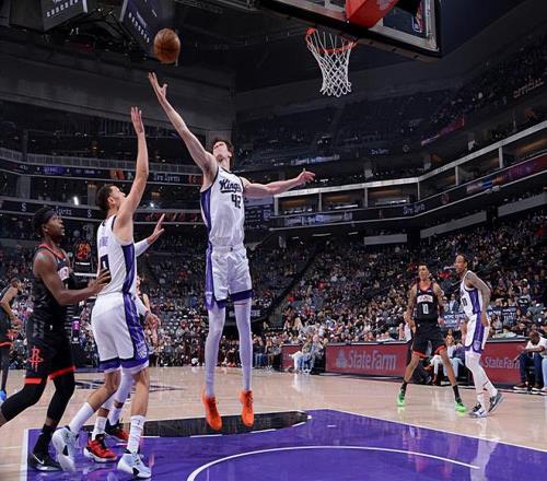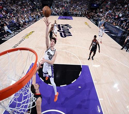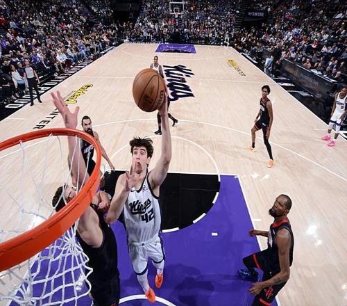 本场比赛中,国王的先发中锋马克西姆-雷诺(Maxime Raynaud)的表现还是值得肯定的。雷诺全场出场20分13秒,投篮10中6,得到了12分9篮板1助攻的准两双数据,其中还包括了3个前场篮板,还有1次失误和4次犯规,正负值为+8。雷诺在进攻端也是展现出了不错的篮下得分能力,他的勾手稳定性出人意料地相当不错,他在进攻端也是给对手内线制造了不小的威胁的。不仅如此,雷诺在防守端的表现也是值得肯定的,他也是能够起到篮板保护方面的作用,他在内线防守方面的表现也不是那么糟糕的水平。雷诺的问题是他出现了比较多的犯规,这也导致了他的出场时间受到了一定程度的限制,否则他还能够打出更加华丽的数据。