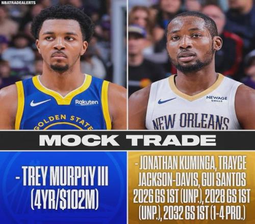 勇士在小波特的交易中,只愿意送出1个首轮签;在墨菲的交易中,勇士愿意搭上2个首轮签。但是这个报价,依然打动不了鹈鹕。有媒体模拟了一笔6换1的交易:库明加、TJD、桑托斯、2个无保护首轮签、1个前四顺位受保护首轮签。
