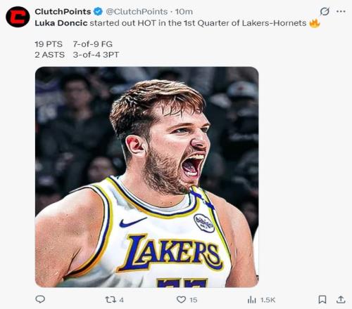 易边再战黄蜂连续命中三个三分球,东契奇还摊手质疑裁判,本场比赛已经多次摊手朝着裁判输出,东契奇吃了一个T。吃T后东契奇终于进入得分模式,他连拿15分帮助湖人缩小到4分打停黄蜂。东契奇拿到34分后扶着腰直接进入更衣室了。
