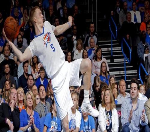 不得不说,小球时代的到来,确实让辛格勒得到了喘息的机会,毕竟整个NBA生涯的三分命中率达到了36.2%,产量也还不错,所以虽然在活塞队只打了2个多赛季,但还是得到了雷霆队的青睐,在14-15赛季的交易截止日前,他被雷霆队引进。