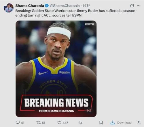爆料王Shams:巴特勒前十字韧带撕裂,赛季报销......