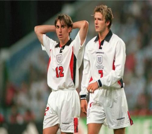 赛前,库明加身着贝克汉姆英格兰队1998年世界杯球衣入场。