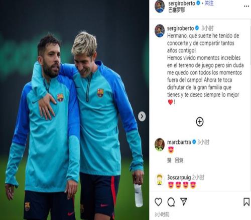 雷速体育10月8日宣 前巴塞罗那球星罗伯托,在昔日队友阿尔巴接受职业生涯后,也在社媒发文对他进行告别。