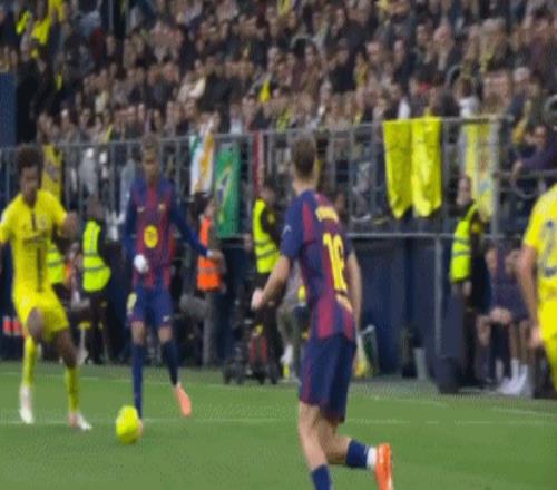 巴萨踢得顺风顺水,开场第10分钟,拉菲尼亚禁区内被踢倒,主裁判判罚点球,拉菲尼亚主罚点球破门。