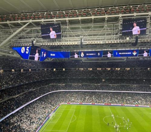 “皇马再入一球,贡萨洛的帽子戏法!”贡萨洛戴帽之际,伯纳乌现场进球播报并未按照惯例仅报送进球队员,而是特别强调了这位小将的成就。伯纳乌死忠看台也在这一刻高唱,“贡萨洛是真正的马德里主义者!”即使是再资深的皇马球迷,也太久没有见到过此等神迹:皇马青训出产的本土年轻射手,在伯纳乌主场上演完美帽子戏法。比赛最后阶段阿隆索将贡萨洛替换下场,伯纳乌全场掌声雷动,球迷们高呼着贡萨洛的名字,向这位小将表示由衷祝贺。