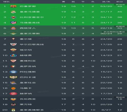 北京时间1月5日,随着皇马5-1皇家贝斯,马竞1-1皇家社会,马略卡1-2赫罗纳、阿拉维斯1-1皇家奥维耶多、莱万特3-0塞维利亚的比赛结束,西甲第18轮结束了所有比赛,最新排名如下!