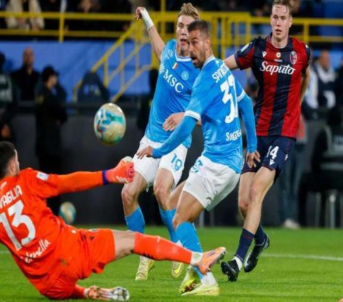 半决赛对AC米兰,赫伊伦对位打爆德温特,靠个人能力策动第一球、又小角度打入第二球。状态出色的丹麦中锋,自然成了博洛尼亚布防的重点。伊塔利亚诺选择用同样来自北欧的挪威中卫海根与之对位,后者的表现显然比德温特出色,但仍然是不够的。海根尝试用身体对抗遏制赫伊伦,结果上半场就吃到黄牌,博洛尼亚门前也数次风声鹤唳。那不勒斯从开场就占据局面主动,埃尔马斯开场不久就与进球擦肩而过,内雷斯则在第36分钟从中场送出精妙直塞,插上领球的斯皮纳佐拉射门,被拉瓦利亚封出。