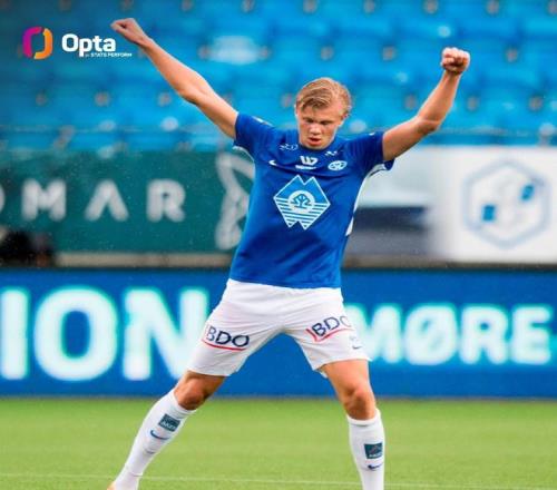 曼城的挪威前锋哈兰德在最近一次对阵博德闪耀的比赛中取得了进球,发生在2018年10月,当时18岁的哈兰德效力于挪威联赛的莫尔德队。