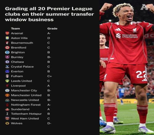 利物浦 转会窗口评级及理由:A