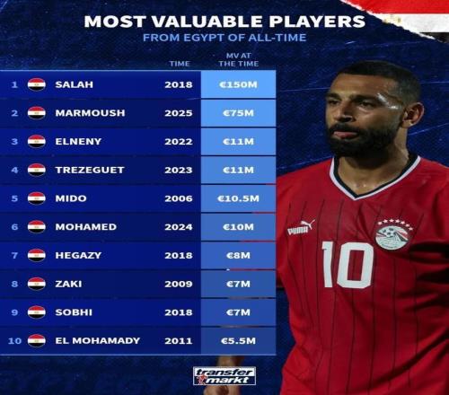德转统计埃及球员历史身价榜: