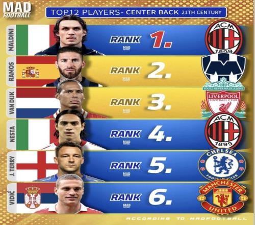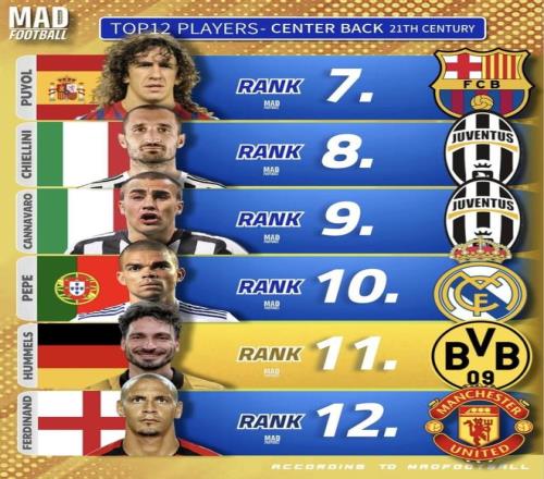 最近MAD Football发布了《21世纪中卫TOP12》榜单。拉莫斯、范戴克、普约尔等球员入选。范戴克和费迪南德排名第3、第12,真的合适吗?下面就由小编来分析一下这个榜单。接下来小编只做客观罗列与对比,不提前下结论;你也可以按自己的标准给出心中的前十二。