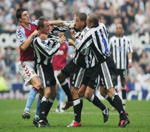 而最著名的一次自然是2005年纽卡斯尔联的李·鲍耶和基隆·戴尔在主场圣詹姆斯公园球场打架,双双被红牌驱逐。那次打斗是如此激烈,以至于鲍耶的球衣都被扯破了,对手阿斯顿维拉球员都看不过眼,巴里加入了劝架行列。