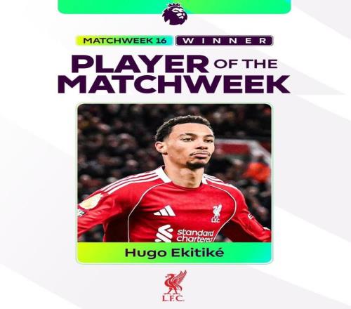 北京时间12月17日,英超官方宣布,埃基蒂克成功当选联赛第16轮最佳球员。