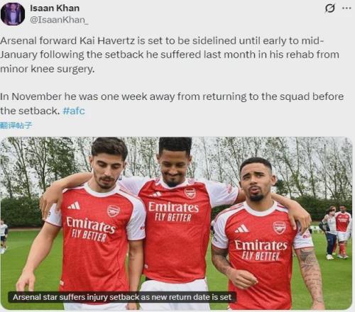 至于哈弗茨,上面邮报的IK说他可能1月中上旬才复出,但阿尔特塔这里又是非常乐观,说“很快”就能归队,咱们关键是不清楚他这个很快是多快,毕竟1月上旬的话,也就2周多时间……好在热苏斯复出了,而且看起来状态不错,哈弗茨暂时没有这么紧迫。