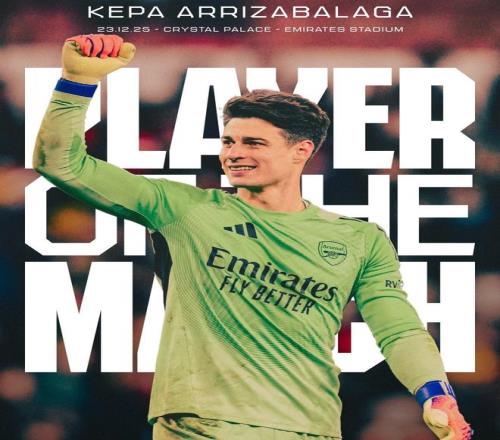英格兰联赛杯1/4决赛的最后一场较量中,阿森纳点球大战击败水晶宫成功晋级。赛后,阿森纳官方宣布门将凯帕当选本轮联赛杯队内最佳球员。