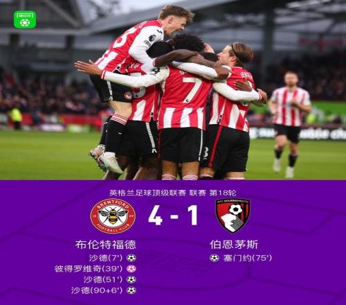 北京时间12月27日,英格兰足球超级联赛第18轮展开较量,布伦特福德坐镇主场迎战伯恩茅斯。比赛开局阶段,伊戈尔-蒂亚戈送出助攻,沙德破门为布伦特福德先拔头筹。此后,彼得罗维奇不慎将球打入自家球门,布伦特福德扩大领先优势。易边再战,亚尔莫柳克成功助攻,沙德再度建功,完成个人第二粒进球。随后塞门约为伯恩茅斯扳回一城。临近结束,达姆斯高送出关键助攻,沙德完成帽子戏法,锁定胜局。最终全场比赛结束,布伦特福德以4比1战胜伯恩茅斯。