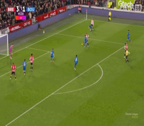 第90+6分钟,沙德头球破门完成帽子戏法,布伦特福德4-1伯恩茅斯