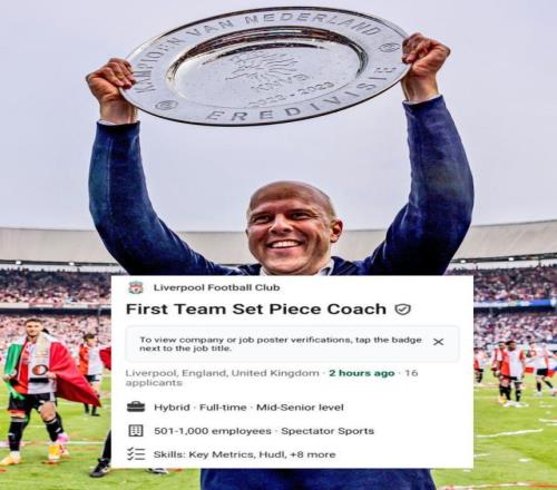利物浦正在加紧寻找新的定位球教练,并在领英发布招聘公告,有意者可在新年1月1-10日期间通过该平台投递简历。而据《利物浦回声报》揭秘,斯洛特挂帅之初,欲带老搭档赖嫩同赴默西塞德,但后者为工签所阻,最终留在费耶诺德,反倒成就新帅范佩西打出不俗定位球数据。