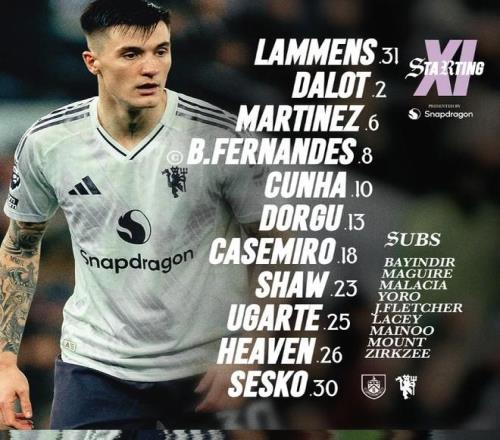 北京时间1月8日4:15,英超第21轮焦点战,曼联作客摩亚球场挑战伯恩利,本场主裁判为阿特维尔,赛前双方首发出炉。
