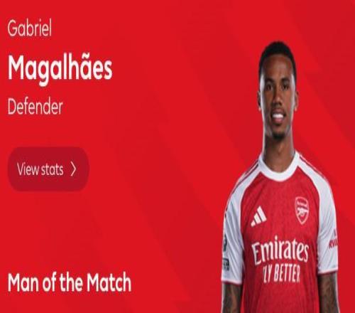 最终经过英超官网球迷投票,加布里埃尔以35%的得票率当选全场最佳球员。