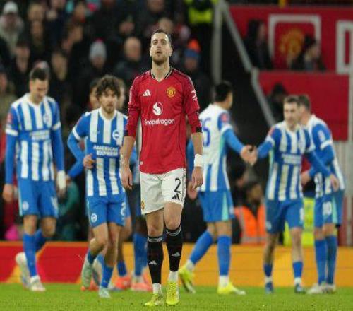 足总杯第3轮,曼联1比2不敌布莱顿。上半场格鲁达为布莱顿首开纪录,下半场韦尔贝克扩大比分。终场前舍什科为曼联扳回1球,曼联前锋谢伊·莱西两黄变一红被罚下。曼联被淘汰出局。