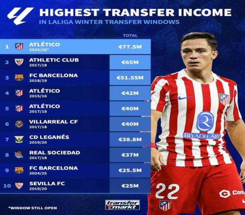 1. 马德里竞技 25-26赛季 7750万欧元