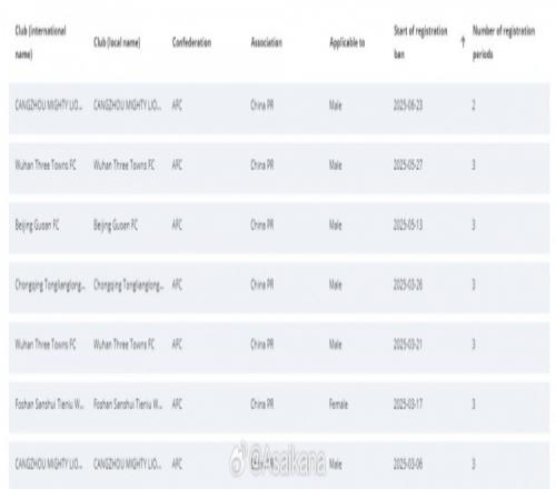 在国际足联转会禁令系统官网上,中甲球队陕西联合的禁令今日已经解除,而中超球队武汉三镇也只剩下两条了。
