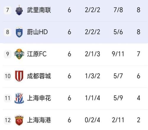 6轮过后,蓉城1胜3平2负积6分位列东亚区第10,也就是倒数第3,反过来正好就是本赛季中超前3排名!